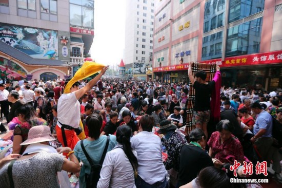 9月15日,幾位來自斯里蘭卡的游客慕名前來天意選購商品。當日,自1992年開業(yè)至今的北京天意市場迎來其在北京西城阜外大街營業(yè)的最后一日,商家趁機“瘋狂甩貨”,大批北京民眾也紛至沓來。這里曾是北京著名的小商品商城,聚集了數(shù)千家商戶。為疏解北京非首都功能,天意商城將于本月16日關(guān)門停業(yè)。中新社記者 崔楠 攝