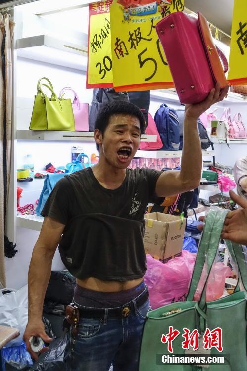 9月15日,一商家舉起商品大聲叫賣。當日,自1992年開業(yè)至今的北京天意市場迎來其在北京西城阜外大街營業(yè)的最后一日,商家趁機“瘋狂甩貨”,大批北京民眾也紛至沓來。這里曾是北京著名的小商品商城,聚集了數(shù)千家商戶。為疏解北京非首都功能,天意商城將于本月16日關(guān)門停業(yè)。中新社記者 崔楠 攝
