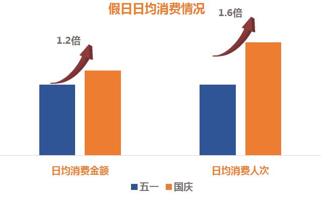 今年國慶中秋,與五一相比,長假帶來的消費(fèi)熱潮更熱烈,日均旅游消費(fèi)金額為五一的1.2倍,日均旅游消費(fèi)人次為五一的1.6倍。