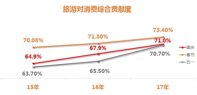 分析銀聯(lián)商務(wù)大數(shù)據(jù),今年國慶中秋假日旅游對泛消費(fèi)行業(yè)綜合貢獻(xiàn)度已超過70%,在三個重要節(jié)假日中,貢獻(xiàn)度低于春節(jié),高于五一。