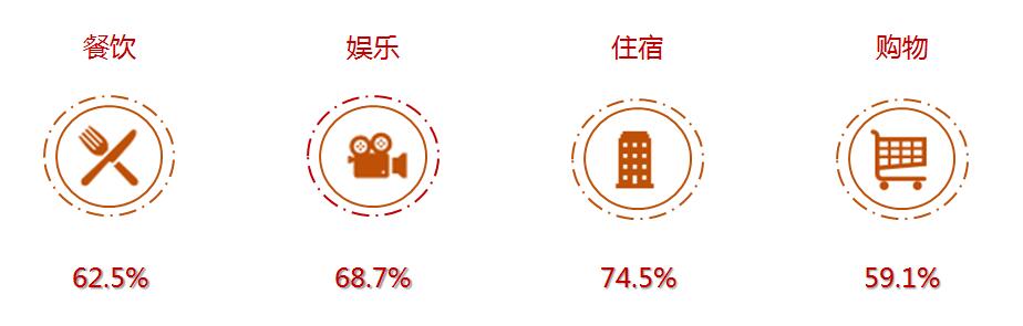 2017年國慶中秋假日旅游消費(fèi)對餐飲、娛樂、住宿、購物四個行業(yè)的貢獻(xiàn)度均在5成以上。作為生活性服務(wù)業(yè)的重要組成部分,旅游消費(fèi)為拉動相關(guān)行業(yè)經(jīng)濟(jì)做出了重要貢獻(xiàn)。