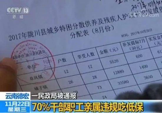 調(diào)查發(fā)現(xiàn),隴川縣民政局56名干部職工中,有40名干部職工的82名親屬不符合享受城鄉(xiāng)低保,而其中27名干部職工及配偶、直系親屬,違規(guī)享受低保資金已達(dá)到40.5萬(wàn)多元!