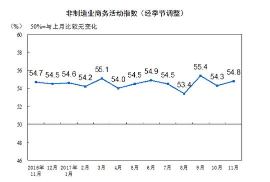 統(tǒng)計局:11月中國非制造業(yè)商務活動指數(shù)54.8% 增速加快