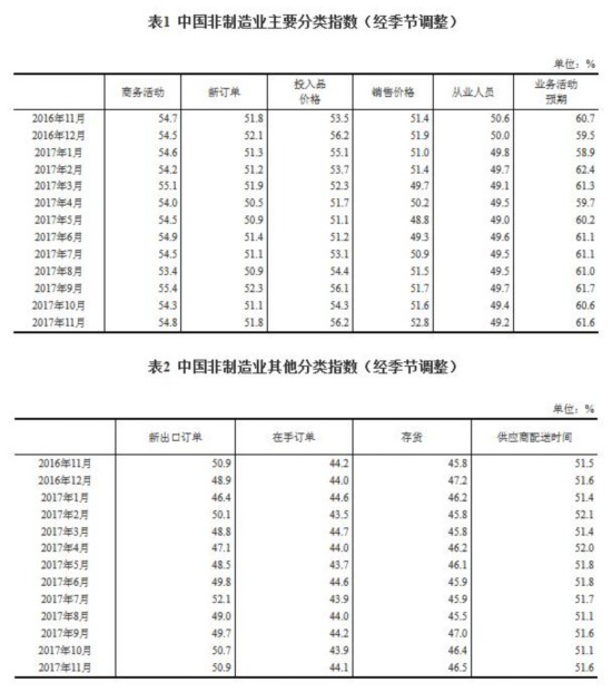人民網(wǎng)北京11月30日電 據(jù)國家統(tǒng)計局網(wǎng)站消息,2017年11月份,中國非制造業(yè)商務活動指數(shù)為54.8%,比上月上升0.5個百分點,持續(xù)位于擴張區(qū)間,非制造業(yè)延續(xù)平穩(wěn)較快的增長態(tài)勢,增速有所加快。kvh安康新聞網(wǎng)