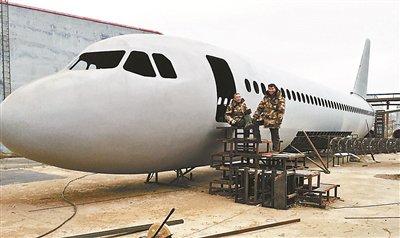 北青報(bào)記者在這則視頻中看到,在一個(gè)院子里,幾個(gè)工人圍繞著一架初具雛形的 " 空客 A320" 飛機(jī)忙碌,從視頻中看,這架 " 飛機(jī) " 外觀很壯觀。朱躍在視頻中介紹,自己從小就喜歡飛機(jī),因?yàn)橘I不起飛機(jī)就想造一架。這個(gè)飛機(jī)的機(jī)長 37.84 米、寬 36 米、高 12 米,是按照空客 A320 飛機(jī) 1:1 制作的,目前已經(jīng)用了 40 噸鐵,花費(fèi)已經(jīng)超過了 80 萬元。
