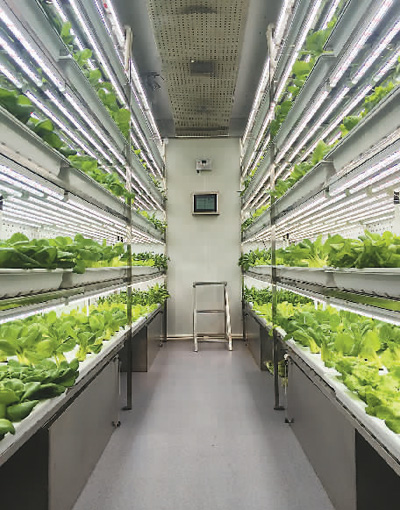 | 圖為基于LED光照的集裝箱式植物工廠。 |