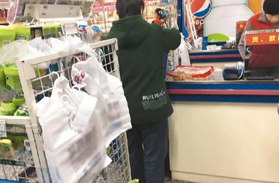 消費者對“限塑令”知之不詳或主觀上仍存圖省事觀念,也是造成“限塑令”執(zhí)行難的重要原因。在位于民航總醫(yī)院附近的一家大型連鎖超市內(nèi),記者隨機采訪了10名正在購物的顧客,其中9人贊同“塑料袋會造成白色污染”,但只有2人自帶了塑料袋,且很多顧客表示“經(jīng)常接受商店、外賣、快遞等免費提供超薄塑料袋”。