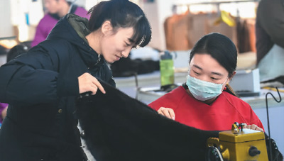 | 12月8日,河北省棗強縣某服裝企業(yè)工作人員正在工作中。目前,該縣年出口裘皮服裝服飾300余萬件。 |
