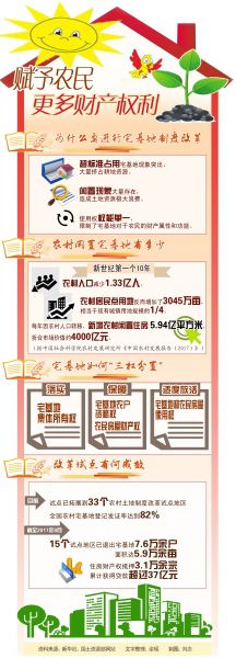 2013年11月 黨的十八屆三中全會(huì)《決定》提出,要“改革完善農(nóng)村宅基地制度,選擇若干試點(diǎn),慎重穩(wěn)妥推進(jìn)農(nóng)民住房財(cái)產(chǎn)權(quán)抵押、擔(dān)保、轉(zhuǎn)讓,探索農(nóng)民增加財(cái)產(chǎn)性收入渠道”。