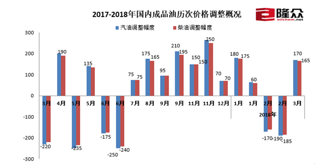 人民網(wǎng)北京3月28日電 (朱江)今日,記者從隆眾、卓創(chuàng)社會(huì)監(jiān)測(cè)機(jī)構(gòu)獲悉,3月29日零時(shí)將上調(diào)汽柴油限價(jià),每噸汽油上調(diào)170、柴油上調(diào)165元,折合每升89#0.13、92#0.13、95#0.14、0#0.14元。隆眾原油分析師李彥表示,本次調(diào)價(jià)是今年第三次上調(diào),本次調(diào)價(jià)過后,2018年成品油調(diào)價(jià)將呈現(xiàn)“三漲兩跌一擱淺”的格局。