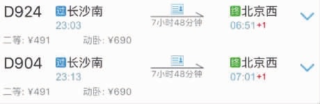 “從4月28日到5月2日,長沙至北京的車次,動車臥鋪最貴的要850元,最便宜的要690元,差價有160元!蓖跖扛嬖V記者。