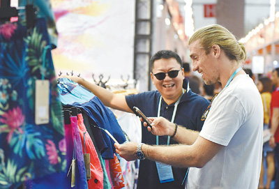 圖為1日,采購(gòu)商在廣交會(huì)上參觀選購(gòu)。