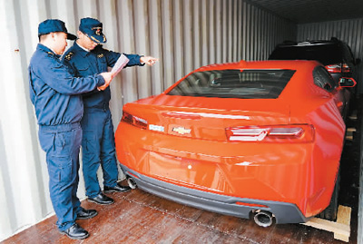 1月17日,河北省首批進(jìn)口汽車(chē)整車(chē)到達(dá)唐山港京唐港區(qū)。圖為唐山海關(guān)的工作人員在唐山港京唐港區(qū)核對(duì)進(jìn)口車(chē)輛的信息。 |