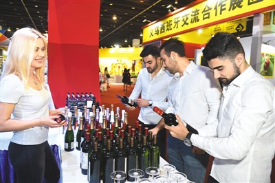 5月6日,2018中國(guó)義烏進(jìn)口商品博覽會(huì)在義烏國(guó)際博覽中心開(kāi)幕。展會(huì)為境外中小企業(yè)源頭產(chǎn)品進(jìn)入國(guó)內(nèi)市場(chǎng)創(chuàng)造良好的貿(mào)易契機(jī)。圖為阿塞拜疆客商在挑選西班牙紅酒。 |