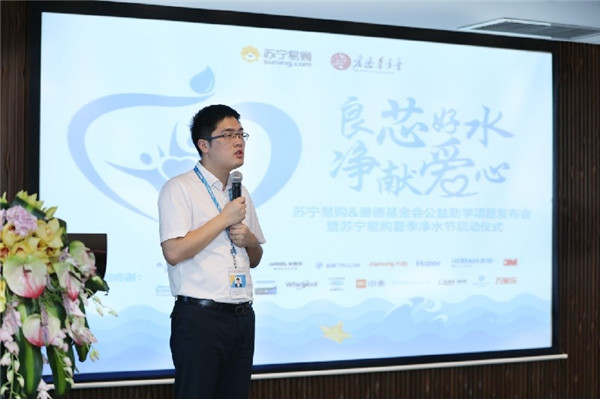 2018年7月10日,蘇寧易購聯(lián)合愛德基金會,在啟動夏季凈水節(jié)的同時,正式開展“良芯好水 凈獻愛心”公益助學項目。7月13日至7月29日,蘇寧易購全渠道指定凈水器每賣出1臺,將捐贈10元至愛德基金會,用于資助孤兒大學生上學。