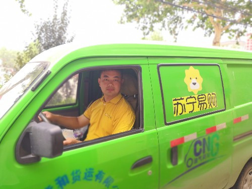蘇寧物流快遞站站長(zhǎng)王少貝開車去村中送貨