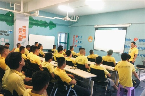 蘇寧物流配送管理經(jīng)理?xiàng)钛訄D在給快遞員培訓(xùn)