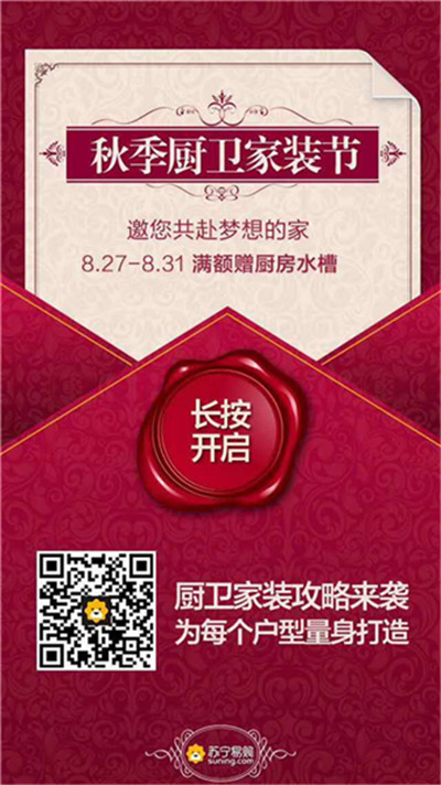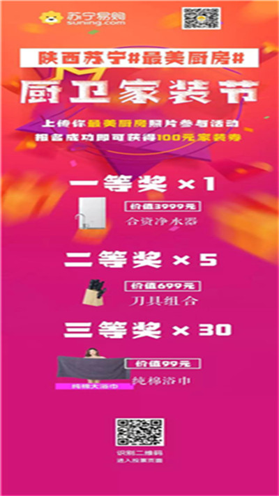 同時(shí),陜西蘇寧秋季廚衛(wèi)家裝節(jié) “最美廚房”開賽啦,關(guān)注【陜西蘇寧】微信公眾號(hào)參與投票,即可獲得100元家裝券,同時(shí)還可獲得陜西蘇寧廚衛(wèi)家裝設(shè)計(jì)講堂現(xiàn)場參與資格。陜西蘇寧將邀請知名設(shè)計(jì)師現(xiàn)場講授廚衛(wèi)家裝專業(yè)知識(shí),讓您的廚房更美更安全(8.31蘇寧易購廣場店、9.7蘇寧易購金花店、9.8蘇寧易購張家堡店)。