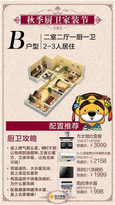 8月27日到9月2日,蘇寧易購聯(lián)合老板、方太、西門子等廚衛(wèi)品牌推出一站式購物優(yōu)惠。同時(shí),蘇寧易購還在全省門店力推廚衛(wèi)產(chǎn)品“升級(jí)換代”活動(dòng),凡購買指定單品的消費(fèi)者最高可享受10%優(yōu)惠補(bǔ)貼,同步更有家裝建材聯(lián)合活動(dòng)。