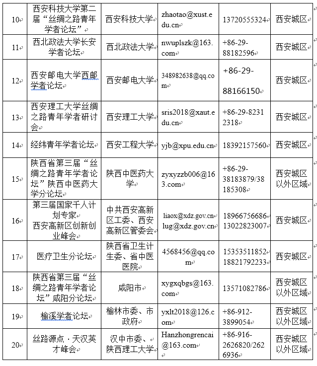 進一步咨詢,可發(fā)郵件或致電各分論壇,聯(lián)系方式見附表。