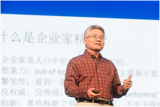 “企業(yè)家和管理者很不一樣,管理者決策是科學(xué)決策,企業(yè)家決策不是科學(xué)決策,是想象決策,對(duì)于企業(yè)家而言又是非常與眾不同的,他是反權(quán)威的,一個(gè)真正有企業(yè)家精神的人,在組織內(nèi)部會(huì)感到很難受,會(huì)感覺到?jīng)]有辦法發(fā)揮,所以才會(huì)選擇跳槽出來做自己的事情。企業(yè)家又是樂觀主義者,他的樂觀沒有辦法按統(tǒng)計(jì)規(guī)律計(jì)算,而且盡管全國(guó)最后只有兩三個(gè)人成功,但是對(duì)于社會(huì)來說都是非常重要的,因?yàn)橛羞@么多人樂觀去做,一百個(gè)人有一兩個(gè)人成功了,給我們?nèi)祟悗淼呢?cái)富和進(jìn)步都是巨大的。”