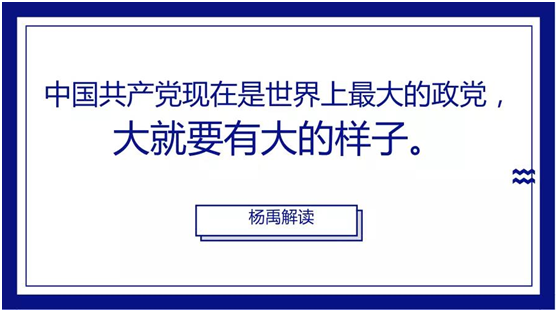 習近平總書記在去年十九大之后新常委見面會上說:中國共產(chǎn)黨現(xiàn)在是世界上最大的政黨,大就要有大的樣子。