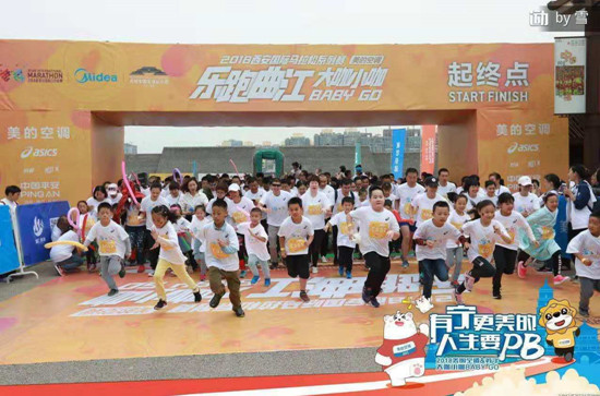 10月6日清晨九點,伴隨著涼爽的秋風(fēng),西安馬拉松配套賽—美的空調(diào)&蘇寧易購大咖小咖Baby Go在響亮的槍聲中活力開跑,近300組家庭1000位跑者迎著朝陽,在大明宮國家遺址公園出發(fā)、奔跑。