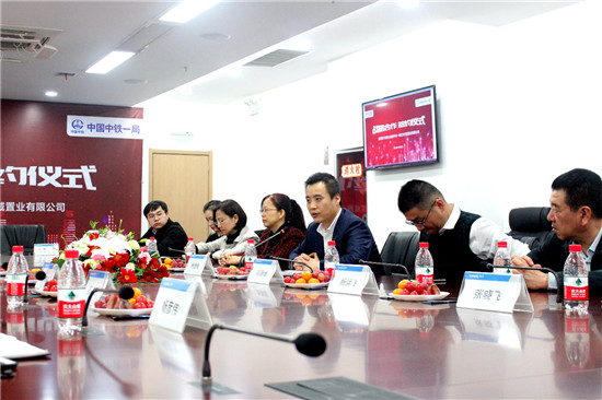 陜西蘇寧與中鐵一局正方天域置業(yè)等領(lǐng)導(dǎo)代表雙方出席簽約儀式