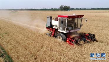 原標(biāo)題:河北:“三夏”忙收麥 6月10日,聯(lián)合收割機(jī)在河北省阜城縣蔣坊鄉(xiāng)王呂村麥田收割小麥(無(wú)人機(jī)航拍)。 “三夏”時(shí)節(jié),河北省小麥由南至……