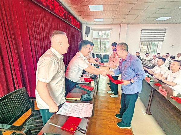 6月26日上午,嵐皋縣城關(guān)鎮(zhèn)西坡社區(qū)黨組織為黨齡滿50年的3名老黨員頒發(fā)“光榮在黨50年”紀(jì)念章,給每名參會(huì)黨員送上“政治生日賀卡”。魏代續(xù) 廖霖 攝i2e安康新聞網(wǎng)
