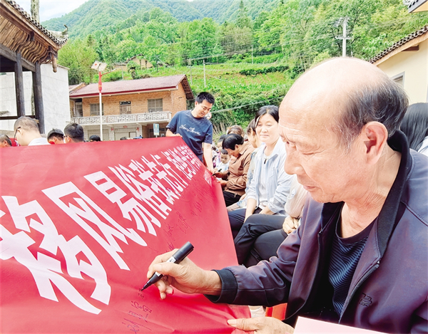 近日,漢濱區(qū)葉坪鎮(zhèn)在慶祝中國(guó)共產(chǎn)黨成立104周年活動(dòng)現(xiàn)場(chǎng),開展“移風(fēng)易俗我先行 拒絕升學(xué)宴請(qǐng)風(fēng)”簽名和宣講活動(dòng)。 胡子新 攝i2e安康新聞網(wǎng)