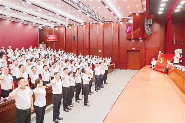 6月29日,漢濱區(qū)農(nóng)業(yè)農(nóng)村局全體黨員重溫入黨誓詞,慶祝中國(guó)共產(chǎn)黨成立104周年。周濬 攝i2e安康新聞網(wǎng)