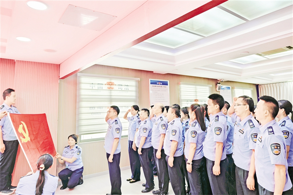6月26日,紫陽(yáng)縣司法局組織機(jī)關(guān)黨支部黨員、局機(jī)關(guān)及下屬單位干部職工開展“重溫入黨誓詞 汲取奮進(jìn)力量”主題黨日活動(dòng)。葉明星 攝i2e安康新聞網(wǎng)