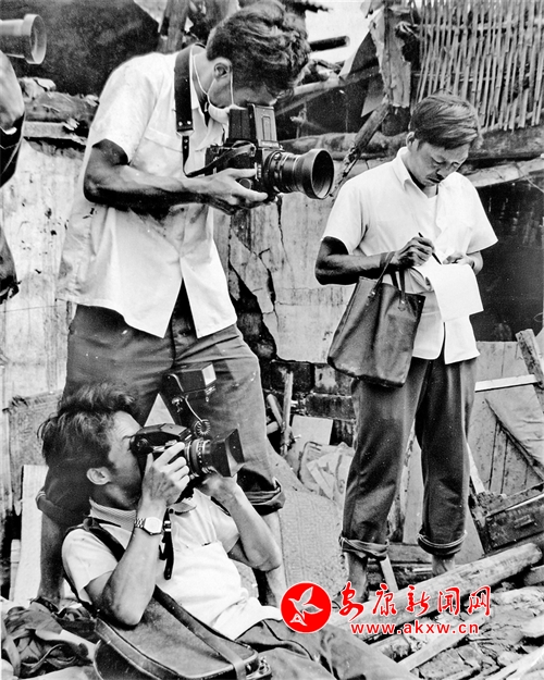 當年我的辦公室,也就成為我們的居住地。所好的是,報社的員工和家屬沒有一個人遇難。也就是從這天開始,我每天騎車子進城采訪拍照。到了晚上我拖著疲憊的雙腿走進暗房沖洗膠卷,等膠卷徹底干了,放大版面需要的新聞圖片。這樣的活,我還沒有等到天亮就完事了。待畫版面的余鶴齡(病逝了)和趙紅橋上班了,我的圖片已經(jīng)放在他們的辦公桌上了。