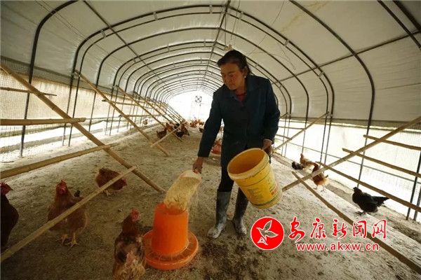 騰靜是我社的一名資深校對,2017年初她帶著精準扶貧的艱巨任務,來到了貧困戶劉合英家。幾年前劉合英丈夫因病去逝,留下三個上學的孩子和治療欠下的外債。騰靜了解情況后,首先爭取到國家針對貧困戶生的助學款,然后幫助劉合英參加了國家扶貧搬遷免費交鑰匙工程。之后,在村干部的幫助下貸了款,建了雞舍和豬圈,買了30只雞和兩頭豬仔。