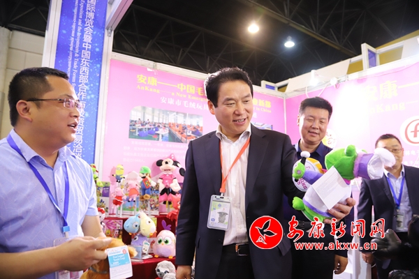 在綠地筆克國際會展中心安康特色產(chǎn)品展館,趙俊民查看了各縣區(qū)特色展位和毛絨玩具、絲綢、茶葉、富硒食品等特色展品,在了解到今年參展商品比往年更加豐富,很多參展企業(yè)都帶來了新產(chǎn)品時,他鼓勵企業(yè)要搶抓機遇、創(chuàng)新發(fā)展、善于競爭,要充分運用好絲博會等各類平臺,展示宣傳安康名優(yōu)特色產(chǎn)品,主動尋找商機,深化對外交流合作。