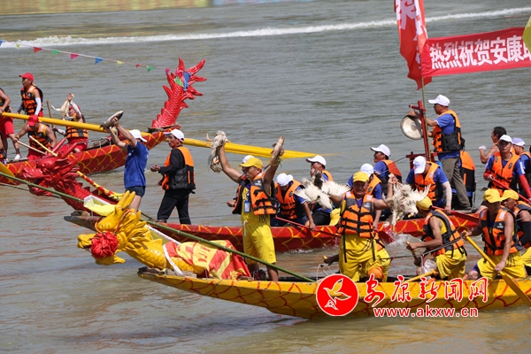 除了傳統(tǒng)儀式,情景劇《總書記來到咱身邊》、 民歌聯(lián)唱《秦巴風(fēng)韻》、 漢調(diào)二黃《不負(fù)青山追夢想》也相繼登臺,優(yōu)美的舞蹈配合婉轉(zhuǎn)唱腔,寓情于景,將傳統(tǒng)與現(xiàn)代、生活與藝術(shù)融合的恰到好處,特別是《總書記來到咱身邊》《不負(fù)青山追夢想》生動講述了習(xí)近平總書記平利之行的感人瞬間和殷切囑托,現(xiàn)場觀眾如身臨其境,心潮澎湃,深受鼓舞。期間還穿插進行了安康經(jīng)典龍舟民俗——龍舟橫渡和搶鴨子摸鯉魚。伴隨著震撼的鼓點聲,龍舟健兒劈波斬浪,競相角逐,江面上水花飛濺,江水中人如離弦,贏得現(xiàn)場群眾連連拍手吶喊。