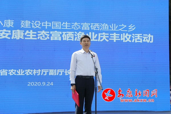 本網(wǎng)訊(記者 艾蓓)9月24日上午,由省農(nóng)業(yè)農(nóng)村廳、安康市人民政府主辦的2020年中國農(nóng)民豐收節(jié)·陜西安康生態(tài)富硒漁業(yè)慶豐收活動在嵐皋縣南宮山鎮(zhèn)嵐翠湖舉行。省農(nóng)業(yè)農(nóng)村廳副廳長蔡斌宣布活動啟動,市委副書記、市長趙俊民致辭,市委副書記王剛主持,市政協(xié)副主席、嵐皋縣委書記周康成出席活動。