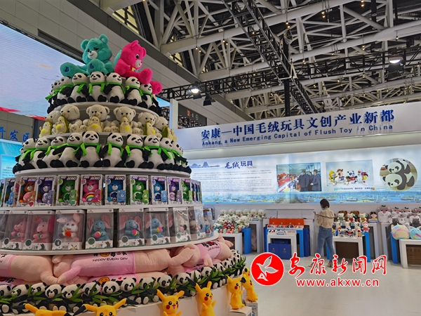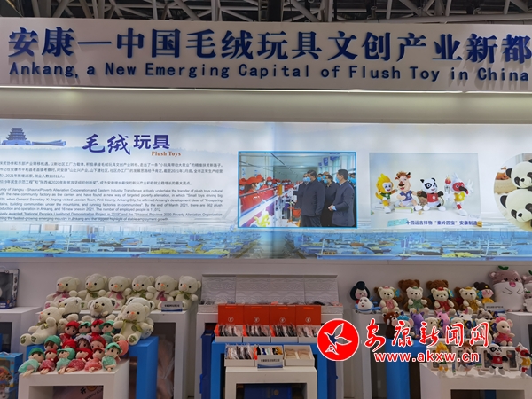 今年五月,第五屆絲綢之路國際博覽會(huì)暨中國東西部合作與投資貿(mào)易洽談會(huì)在西安舉行。走進(jìn)安康展館,毛絨玩具搭建的小山格外顯眼,十四運(yùn)吉祥物“秦嶺四寶”占據(jù)C位,展廳四周也用毛絨玩具娃娃進(jìn)行點(diǎn)綴。前來拍照、采購、咨詢的市民絡(luò)繹不絕。不少企業(yè)現(xiàn)場接到訂單。