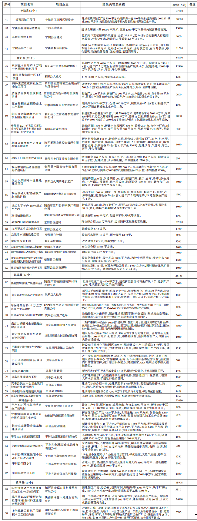 安康市 2021 年四季度以來(lái)投產(chǎn)投用