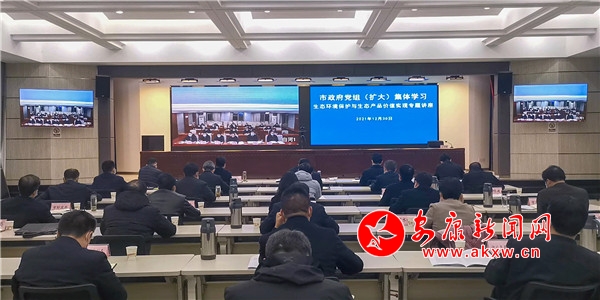 本網(wǎng)訊(記者 吳單 通訊員 靳琰)12月30日晚,市政府黨組開展生態(tài)環(huán)境保護與生態(tài)產(chǎn)品價值實現(xiàn)專題學(xué)習(xí)。市政府黨組書記、市長武文罡主持會議并講話。市政府黨組成員,市政府有關(guān)工作部門主要負責同志,市政府辦公室副縣級以上領(lǐng)導(dǎo)干部參加專題學(xué)習(xí)。各縣(市、區(qū))政府班子成員及部門負責同志以視頻形式參加學(xué)習(xí)。