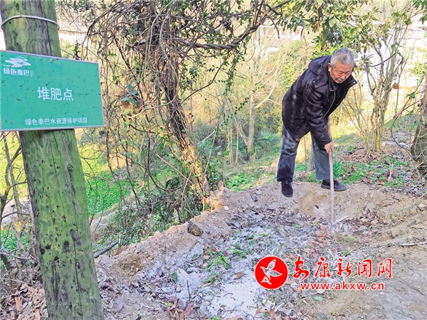 “自從開始做小流域治理這個工作,綠色秦巴環(huán)保公益服務(wù)中心就鼓勵村民使用有機肥,人工除草,盡量不使用除蟲劑以及除草劑,避免化肥、除蟲劑和除草劑對水源造成潛在污染。”李輝智告訴記者,家里現(xiàn)在地里施肥全靠自己弄的農(nóng)家肥。說著他拉起記者走到路邊,用鋤頭翻開一個2米左右的土坑,坑里漚的正是他的堆肥。