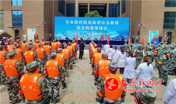 當天模擬演練以紫陽縣任河流域在主汛期3日內(nèi)降水量超過200毫米,任河出現(xiàn)超警戒洪水和突發(fā)山洪地質(zhì)災害為背景。選定受洪水、山洪及地質(zhì)災害威脅嚴重的毛壩鎮(zhèn)和高灘鎮(zhèn)2個重點鎮(zhèn)、4個具有代表性的村(社區(qū))組織應急演練,對監(jiān)測預警、會商研判、巡查監(jiān)測、應急響應、現(xiàn)場救護、強制撤離、迎戰(zhàn)洪水、緊急救援、安置保障等共9個科目20個場景進行情景化、實戰(zhàn)化、系統(tǒng)化演習,通過全流程推演、全要素配置、全鏈條實操,全面檢視我市防汛體制優(yōu)化調(diào)整運行機制和成效。