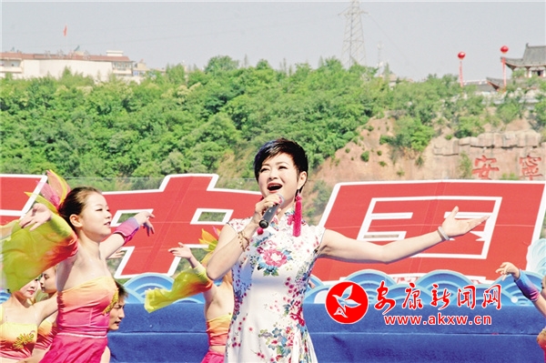 2013年第十三屆安康龍舟節(jié)開幕式上,安康籍國(guó)家一級(jí)演員陳俊華獻(xiàn)唱。 潘潤(rùn)生 攝