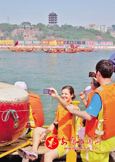 2011年龍舟節(jié)期間,外國(guó)游客體驗(yàn)劃龍舟。邵向東 攝