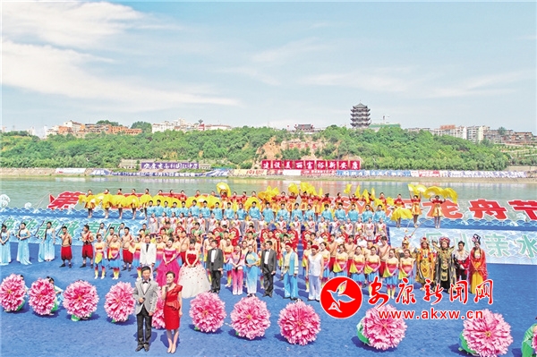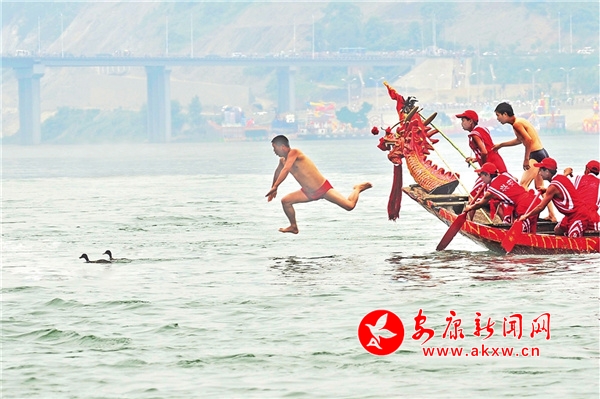 2012年第十二屆安康龍舟節(jié),來(lái)自安康冬泳隊(duì)的200余名冬泳愛好者助興龍舟節(jié)開幕式。 邵向東 攝
