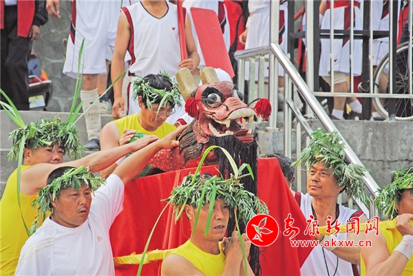 2010年6月13日,第十屆安康龍舟節(jié)開幕前一天,所有參賽船隊(duì)在西關(guān)土地廟迎接老黑龍至漢江邊,并舉行了龍舟開賽前的下水祭祀儀式。鄧軍 攝