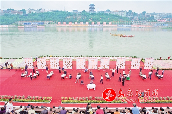 2009年第九屆安康龍舟節(jié)上,國(guó)家象棋特級(jí)大師柳大華與安康10位象棋高手進(jìn)行盲棋車輪戰(zhàn)。 邵向東 攝