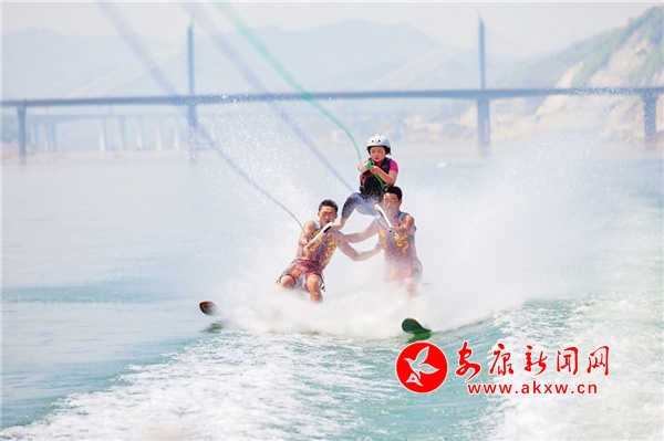 2011年,第十一屆安康龍舟節(jié)開幕式上,國(guó)家水上表演隊(duì)亮相漢江。邵向東 攝