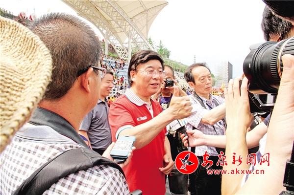 2016年,第十六屆安康龍舟節(jié)開幕式上,央視著名體育解說員韓喬生點(diǎn)贊安康龍舟節(jié)。 陳榮斌 攝